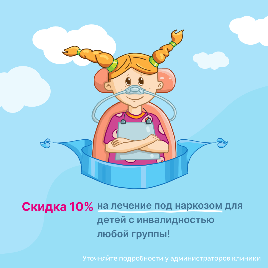 Скидка 10% на лечение под наркозом для детей с инвалидностью любой группы!